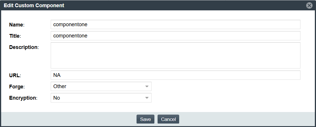 5. On the Edit Custom Component window, update the component properties as needed. See Custom Component Properties for field descriptions.