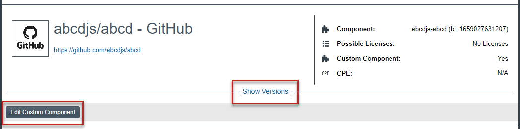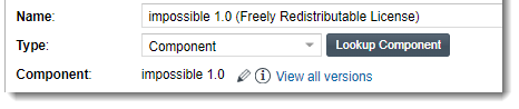 • Click Show Versions to create one or more component-version-license instances for the component.