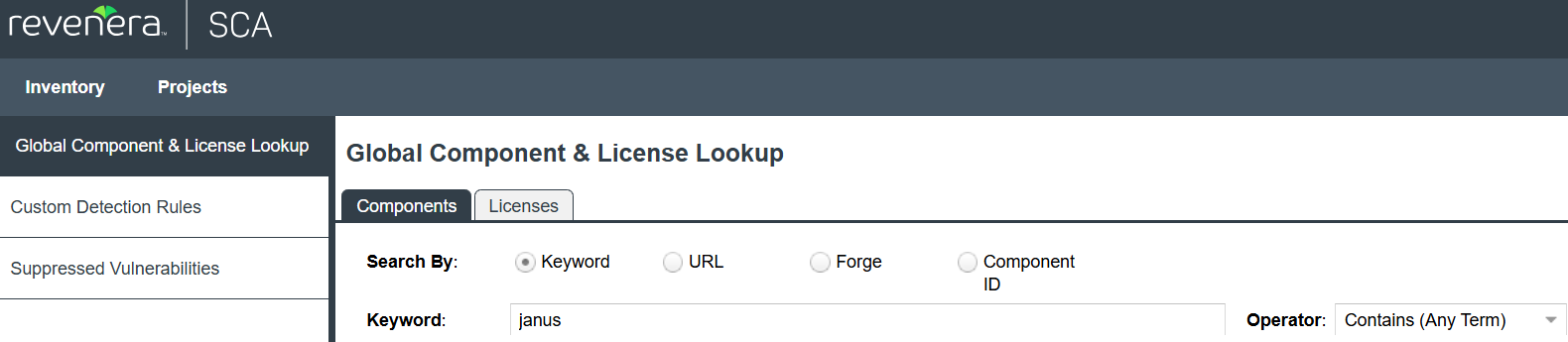 Open the Global Component & License Lookup tab, using the instructions in Accessing the Global Component & License Lookup Feature.
